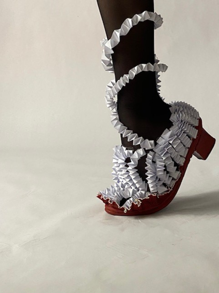 Restitution d’un workshop « Démarches, Postures » : présentation de prototypes de sandale et photographies.